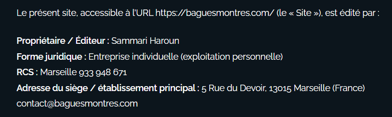 Conformément aux dispositions de la loi n° 2004-575 du 21 juin 2004 pour la confiance en l’économie numérique, il est précisé aux utilisateurs du site Bagues Montres l’identité des différents intervenants dans le cadre de sa réalisation et de son suivi.